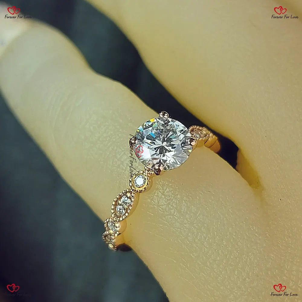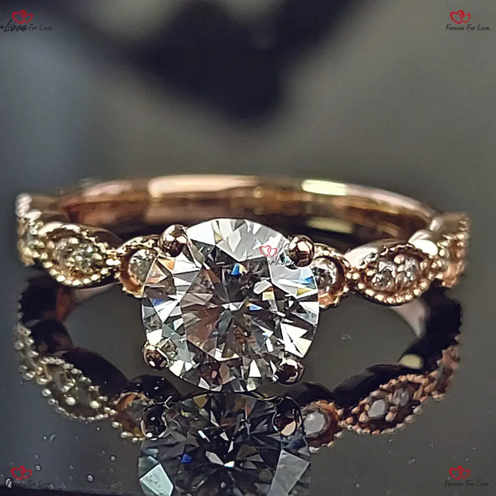 Bague Art Déco en diamant de laboratoire | Or rose | Certifié IGI | Bague en diamant vintage | Cadeau d'anniversaire