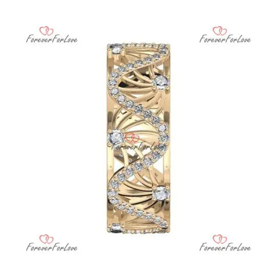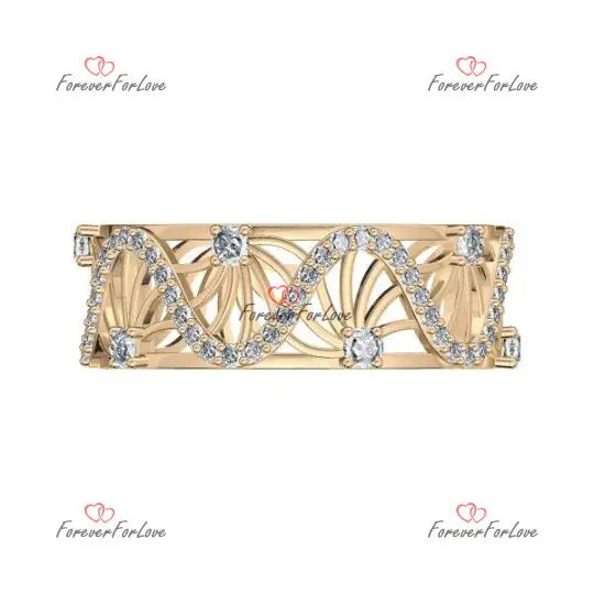 Bague en or massif avec diamants | Bague large en or | Bague pavée de diamants | Bague anniversaire vintage