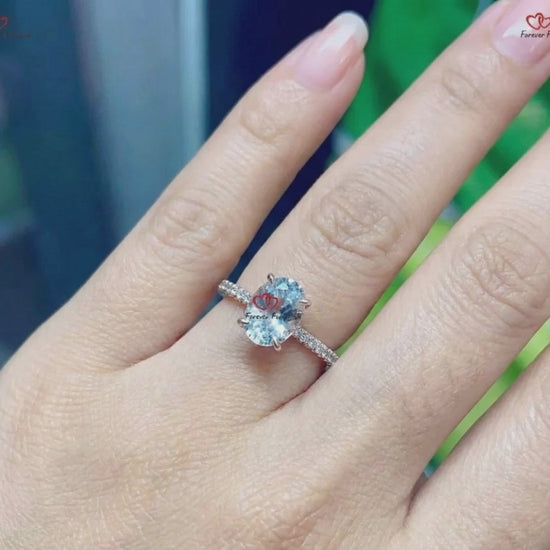Bague de fiançailles élégante en saphir blanc taille ovale