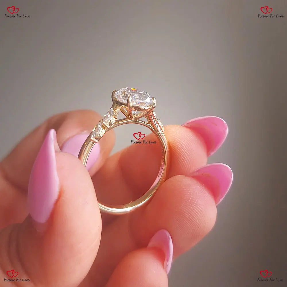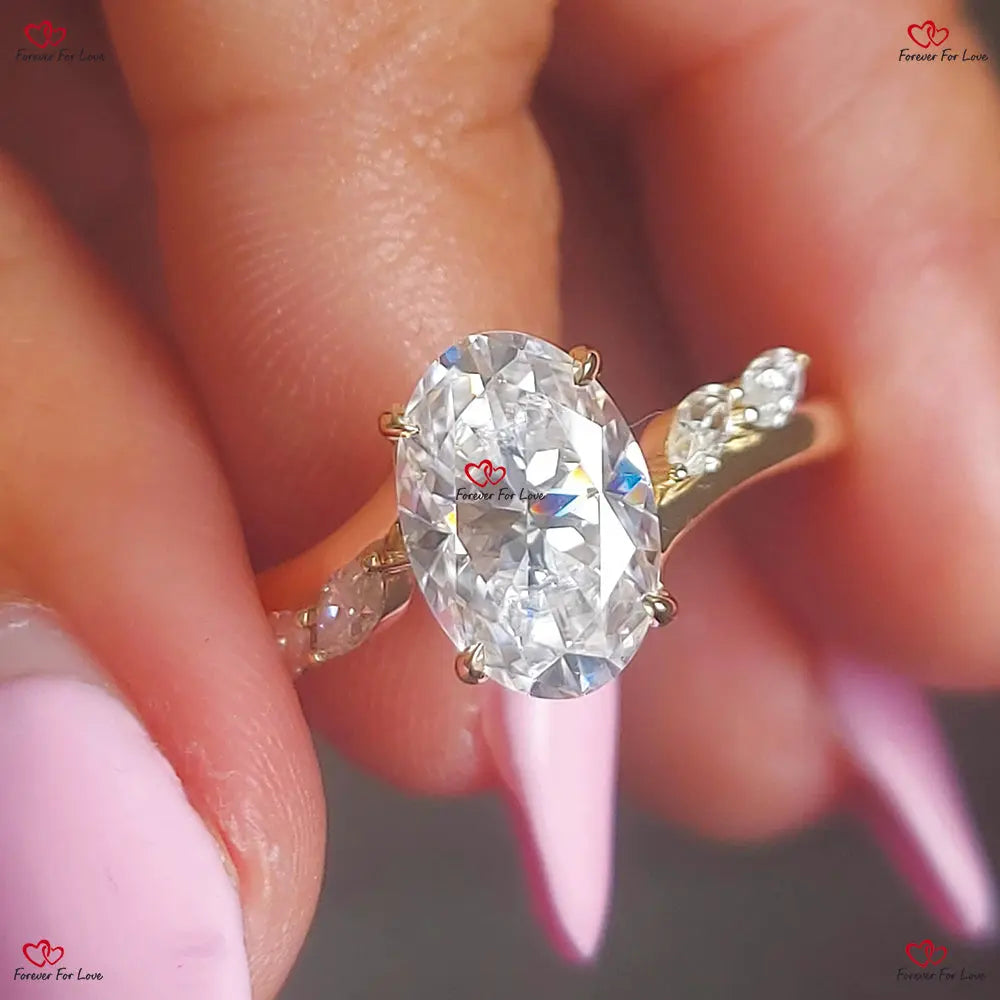 Bague de fiançailles ovale unique avec bande de diamants marquise