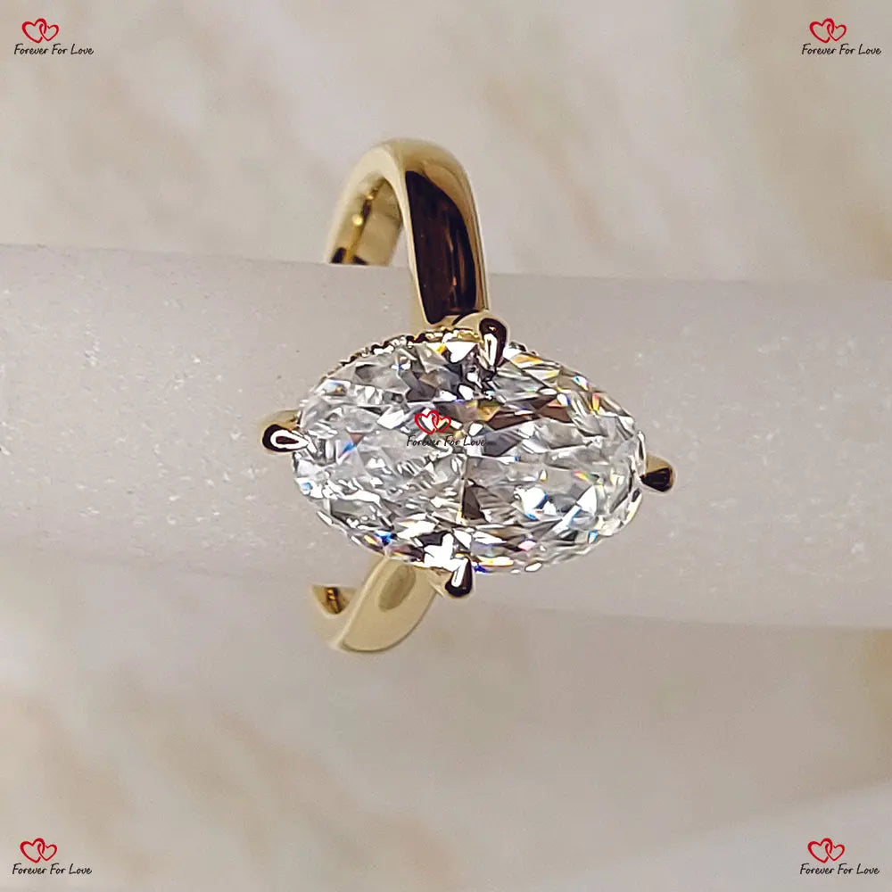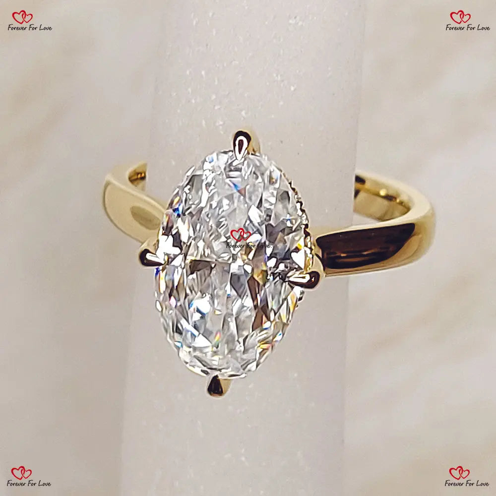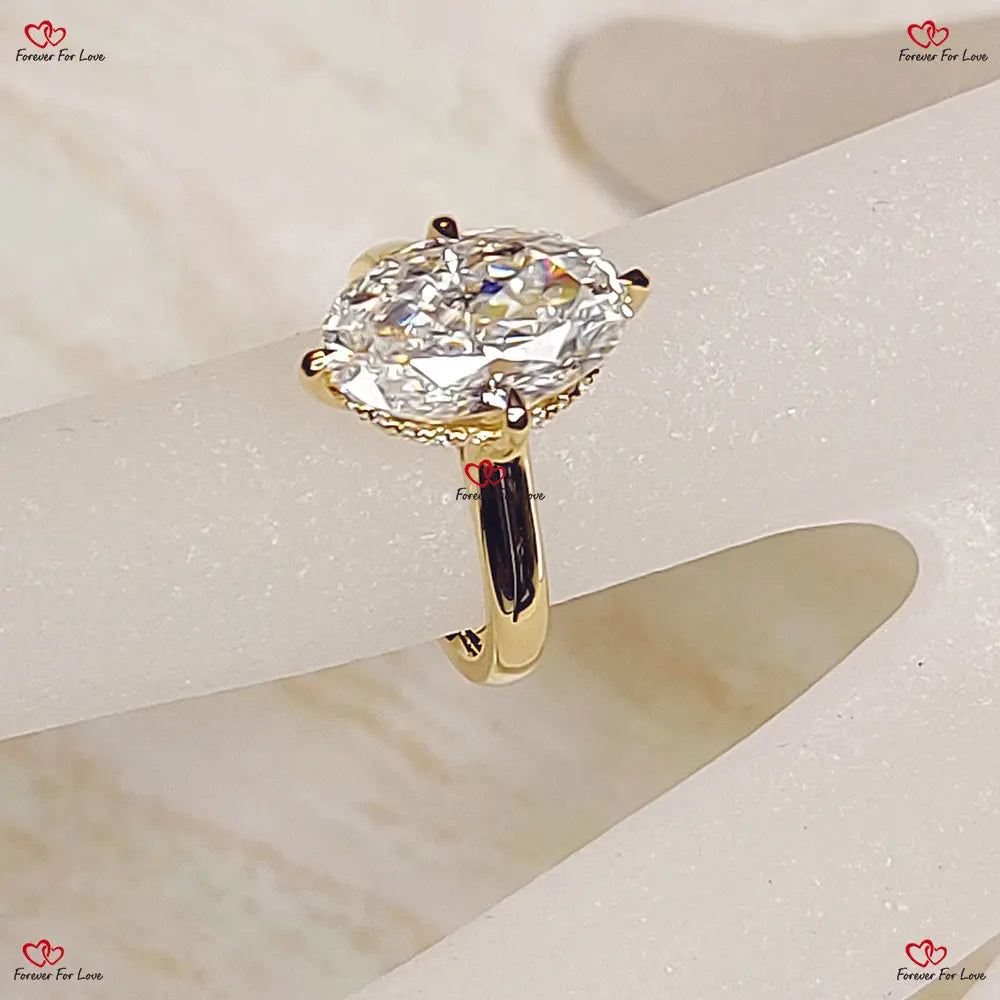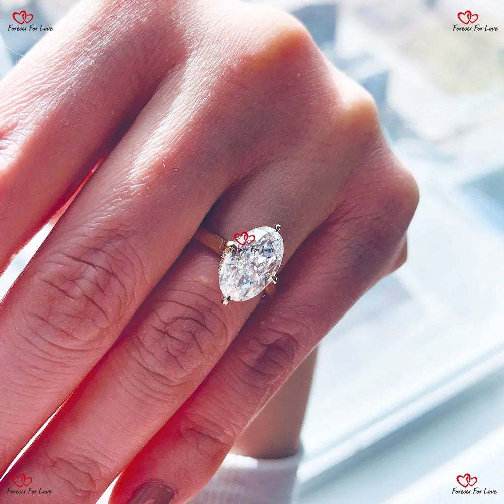 Bague de fiançailles à coupe ovale Bague de fiançailles hybride en moissanite ovale à glace pilée