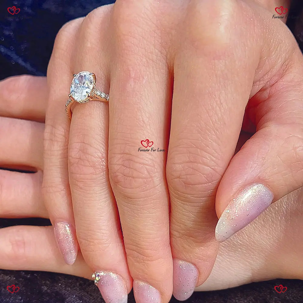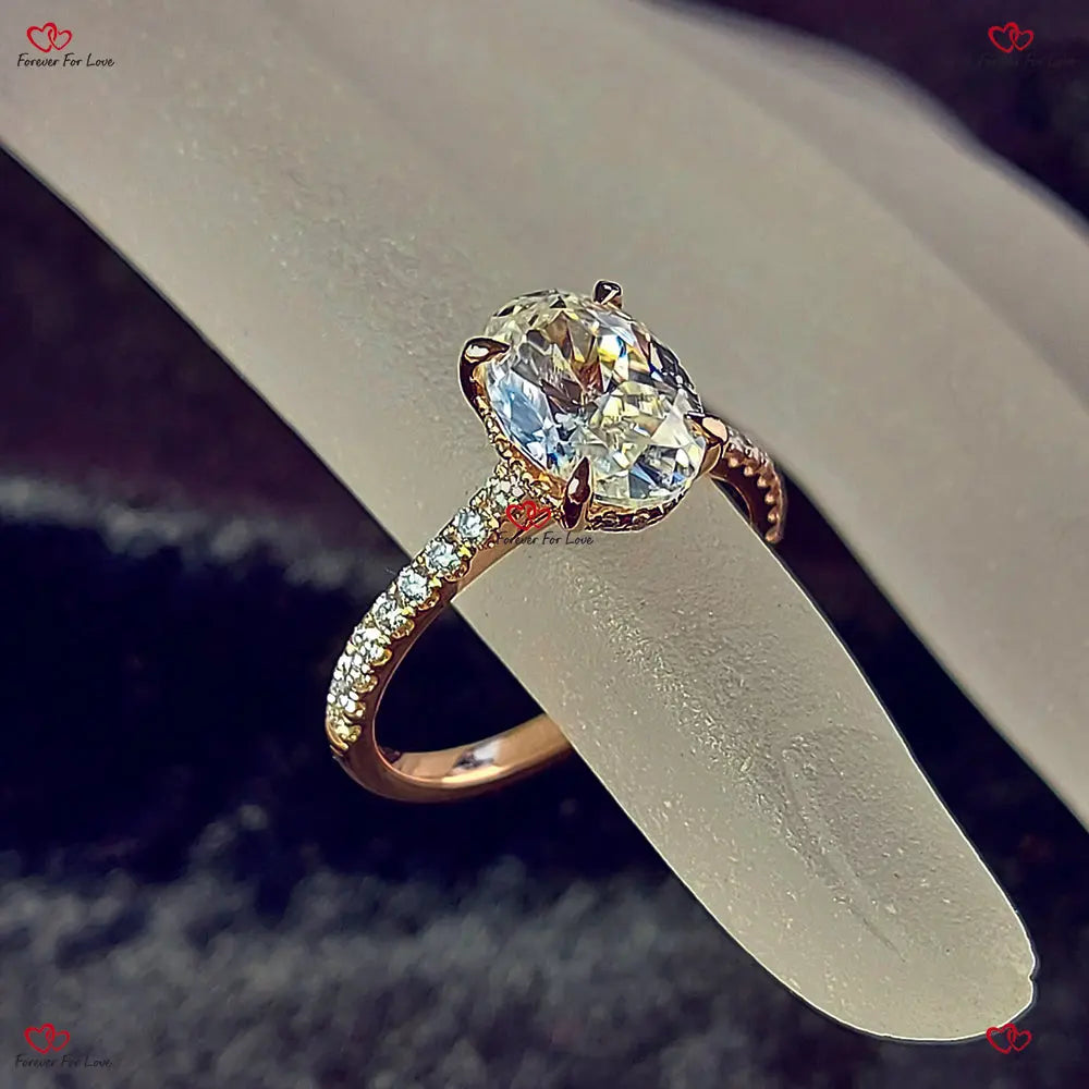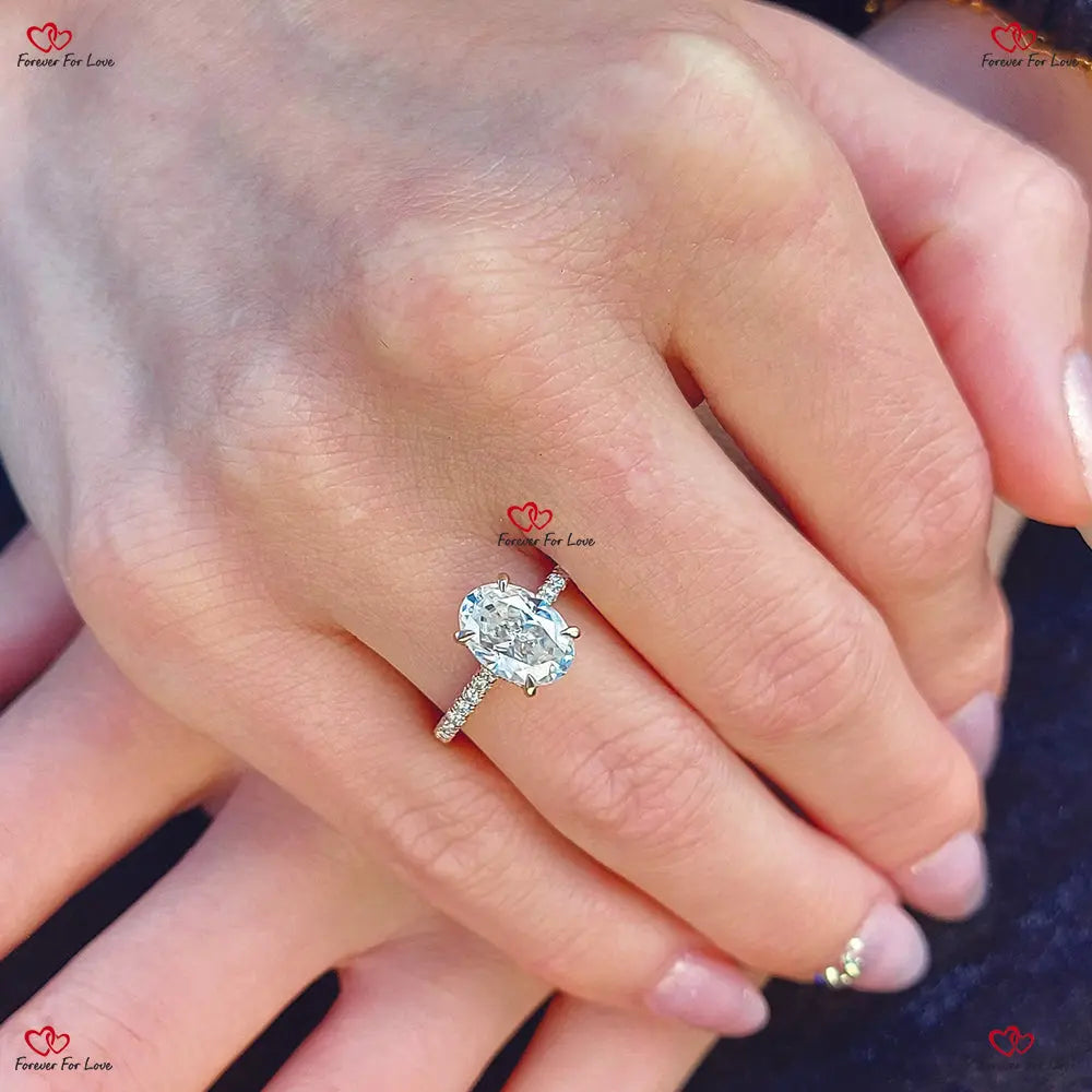 Bague de fiançailles en moissanite à coupe ovale Bague de fiançailles moderne ovale allongée en or massif Forever One