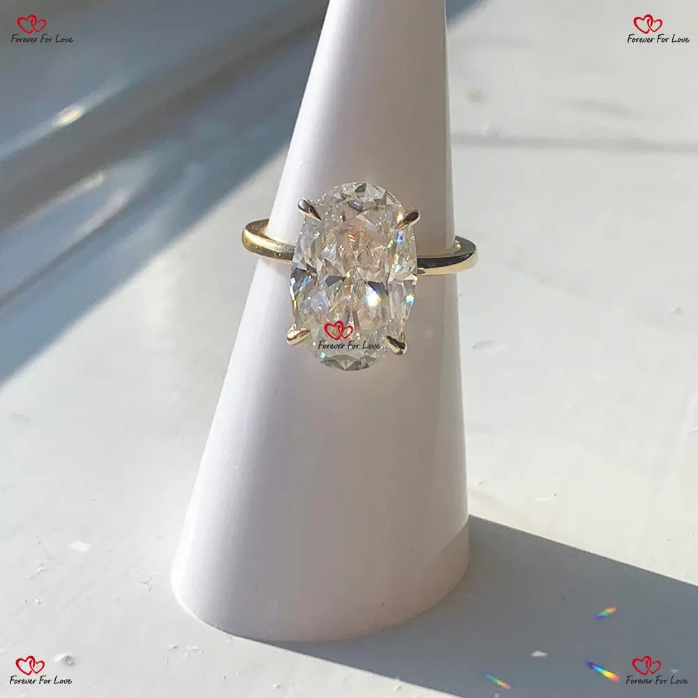 Bague de fiançailles en moissanite à taille ovale avec halo de diamants