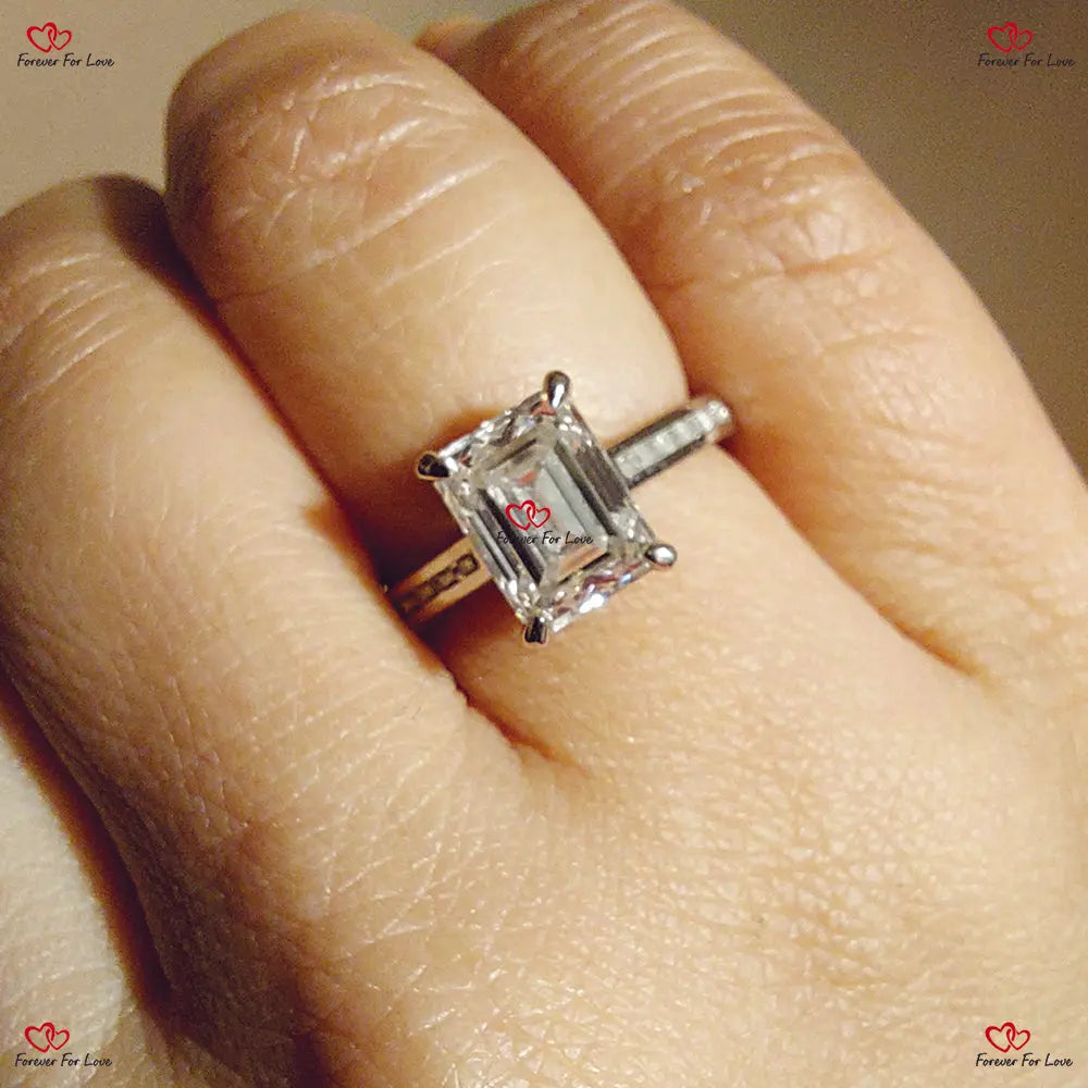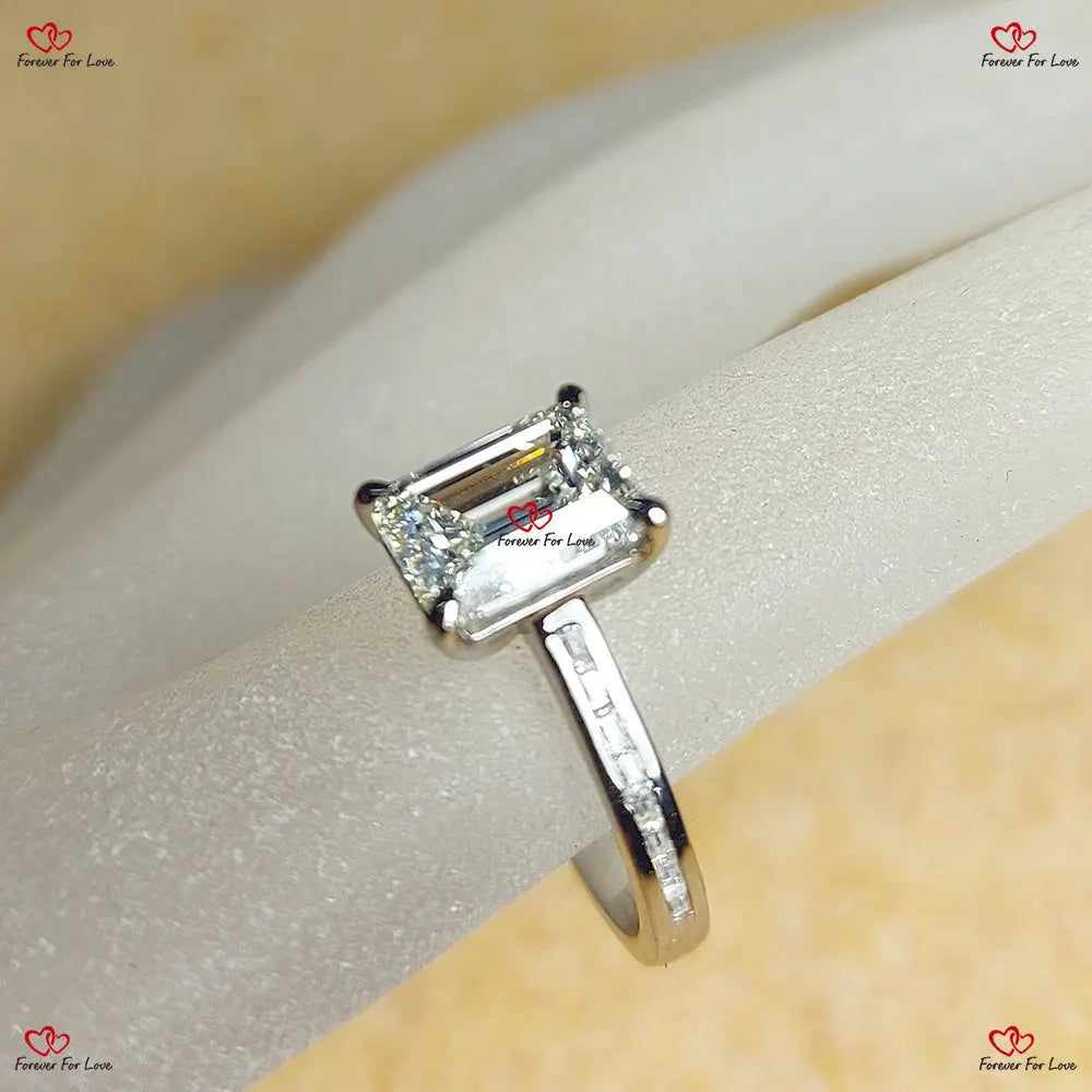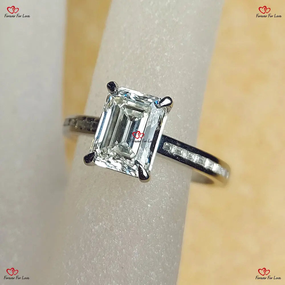 Bague de fiançailles solitaire en platine et diamant taille émeraude certifiée IGI