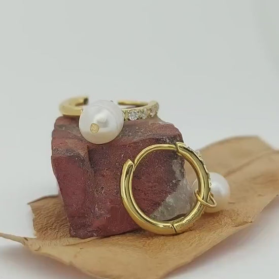 Boucles d'oreilles créoles en perles des mers du Sud - Boucles d'oreilles créoles de mariée avec grosses perles ovales