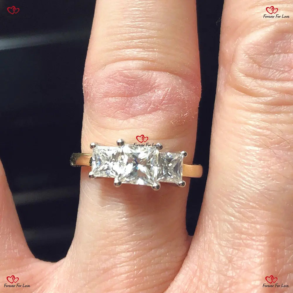 Bague de fiançailles Trilogy Elegance à 3 pierres en moissanite taille princesse