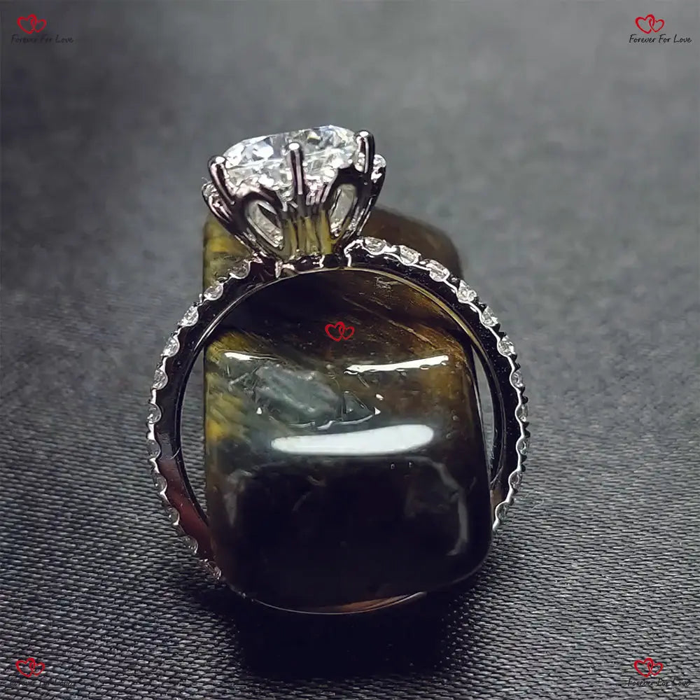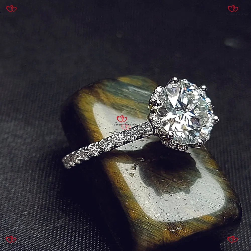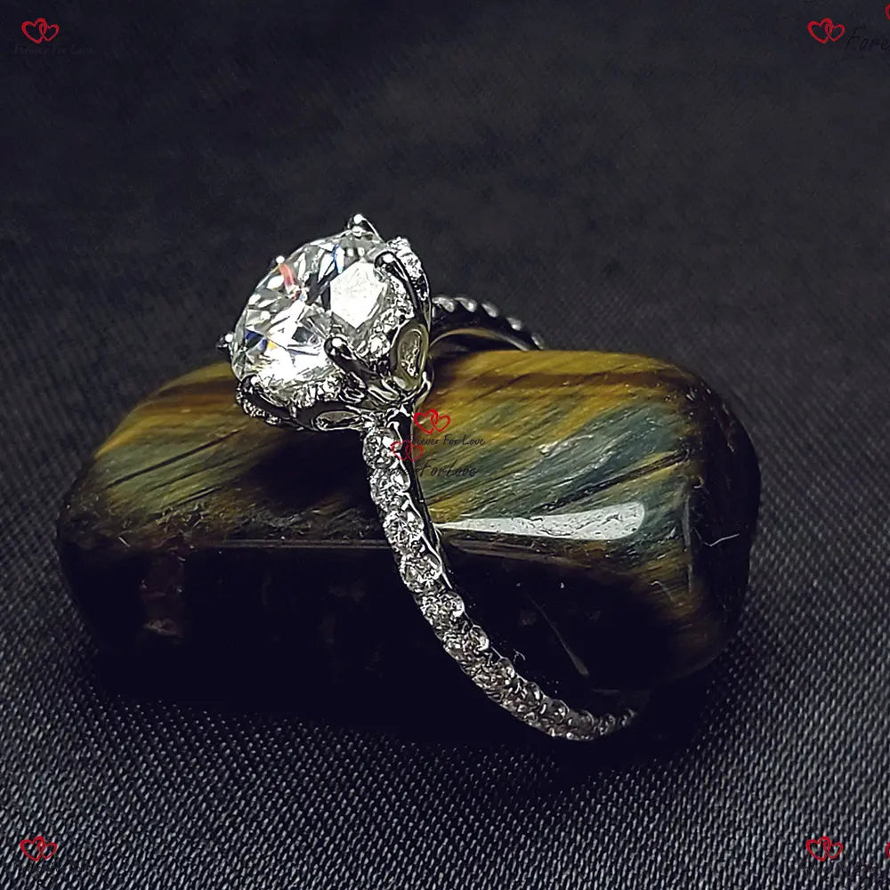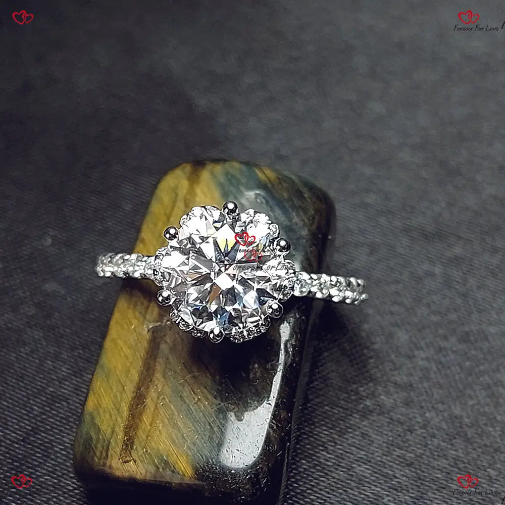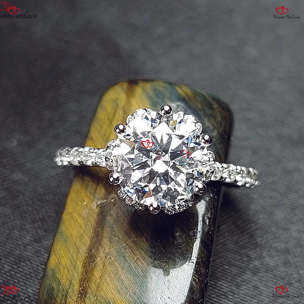 Bague de fiançailles ronde unique en moissanite à griffes de fleur vintage | Or blanc | Ronde taille brillant