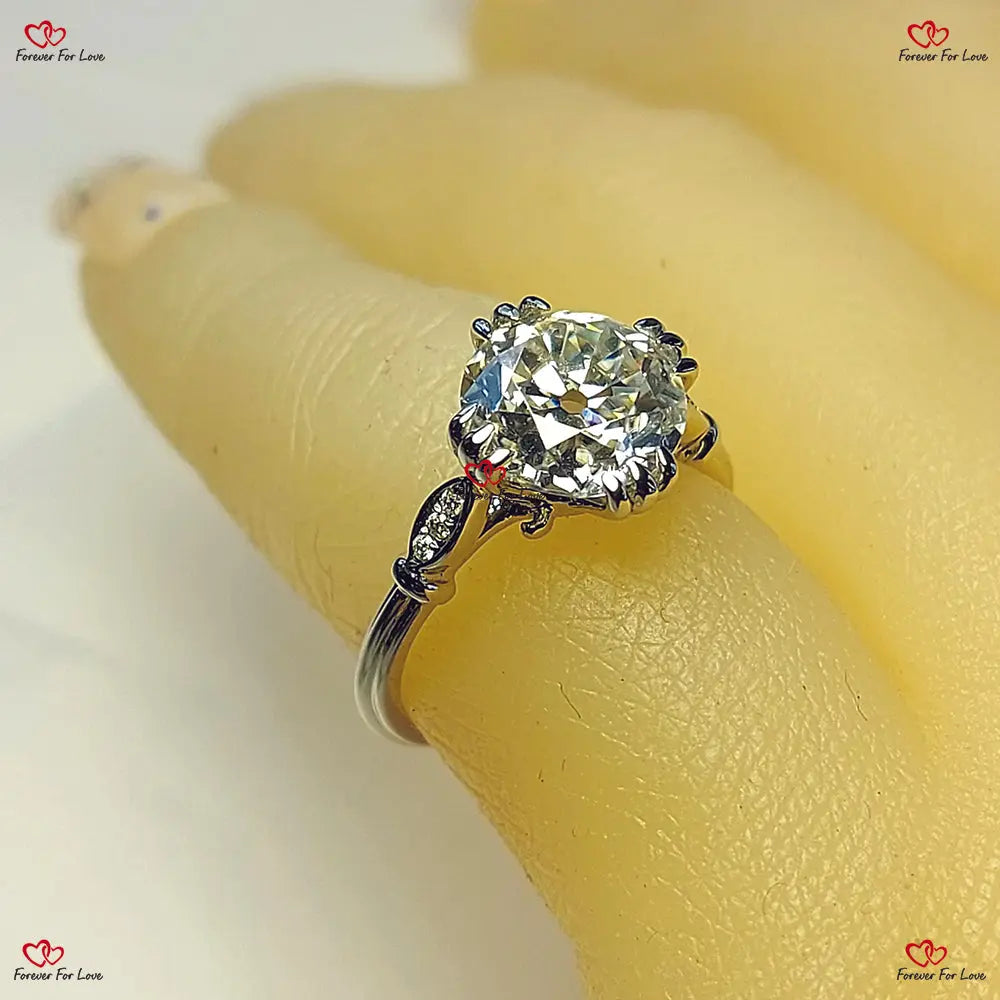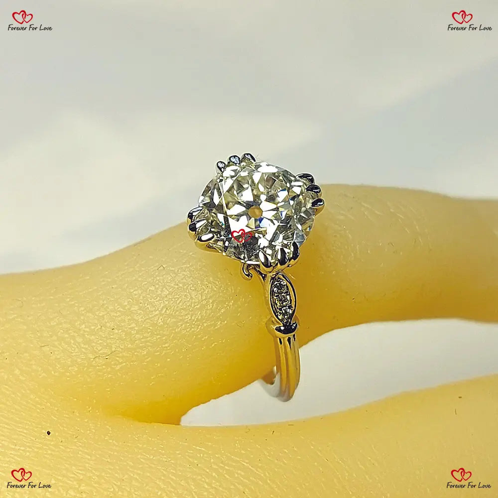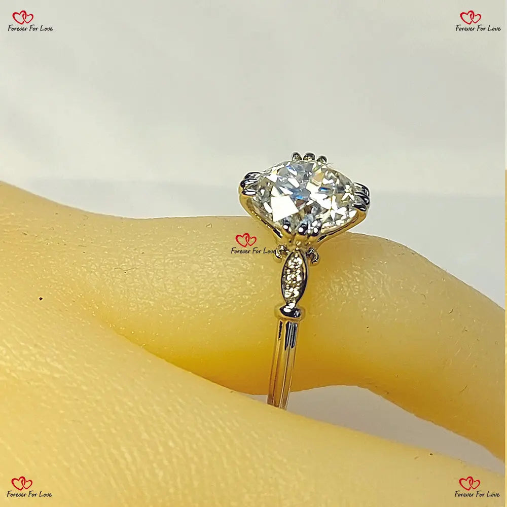 Élégance vintage : bague de fiançailles solitaire en moissanite taille ancienne en or massif