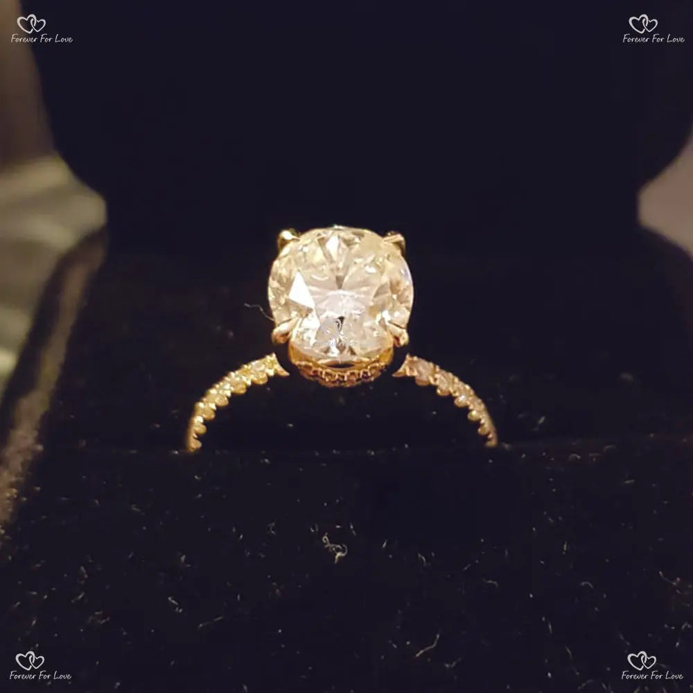 3 Karat ovaler Moissanit-Verlobungsring aus massivem Gold