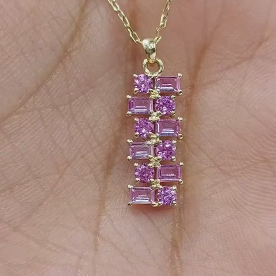 Baguette & Round Diamond Necklace with Lab-Grown Pink Sapphire
